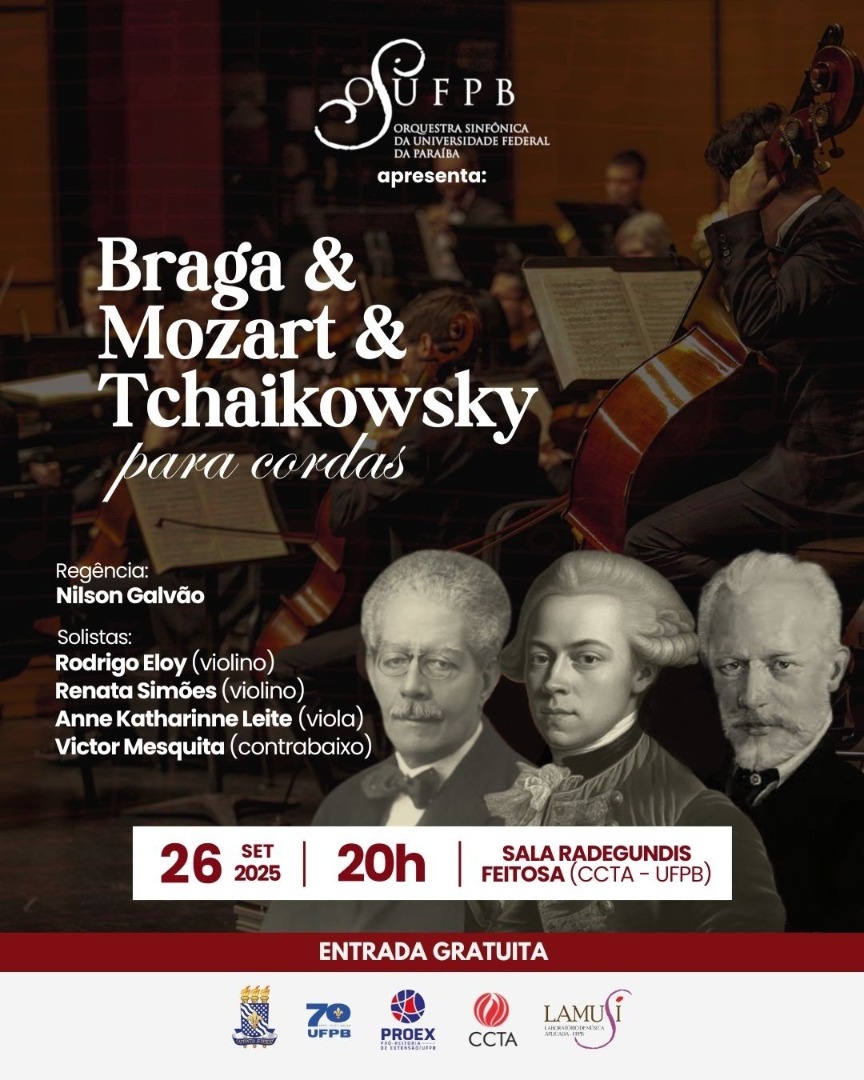 No concerto desta semana, OSUFPB toca repertório de Francisco Braga, Mozart e Tchaikovsky só para cordas